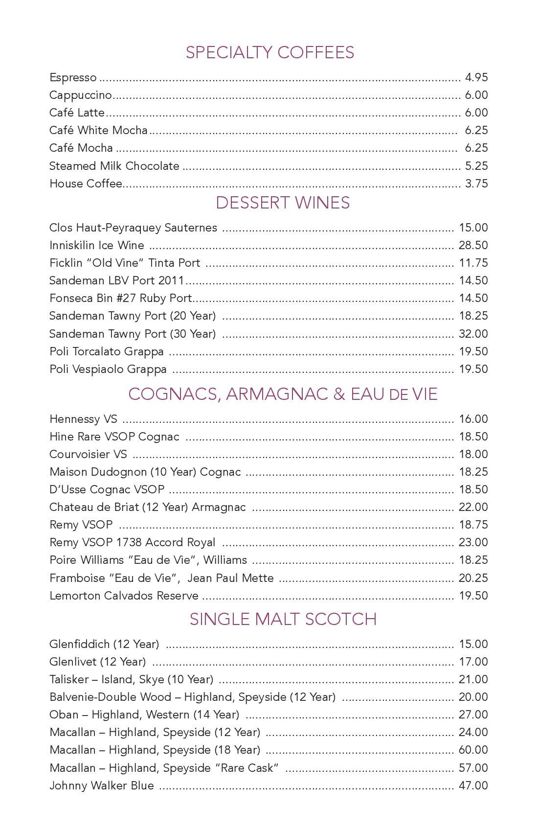 Dessert Menu