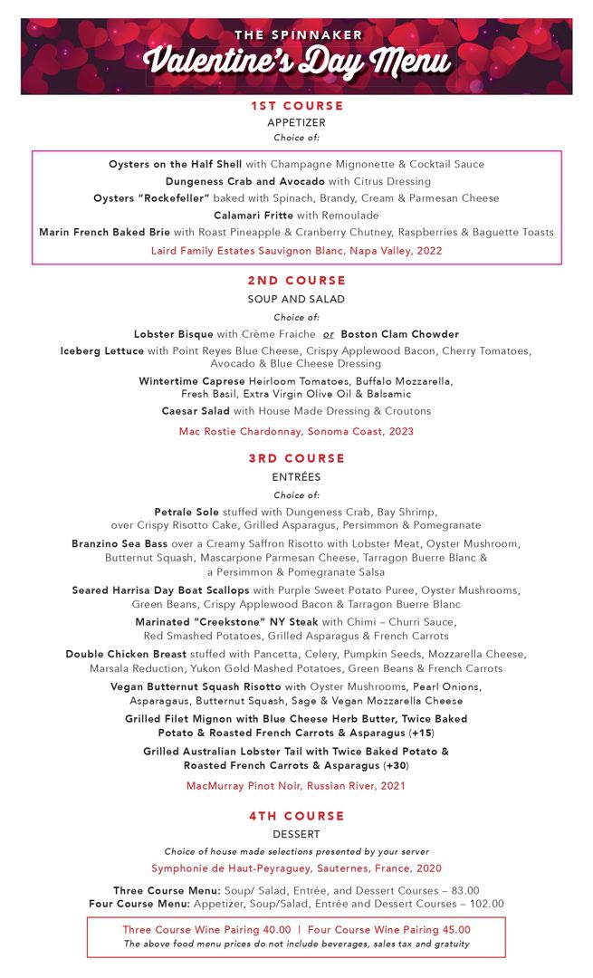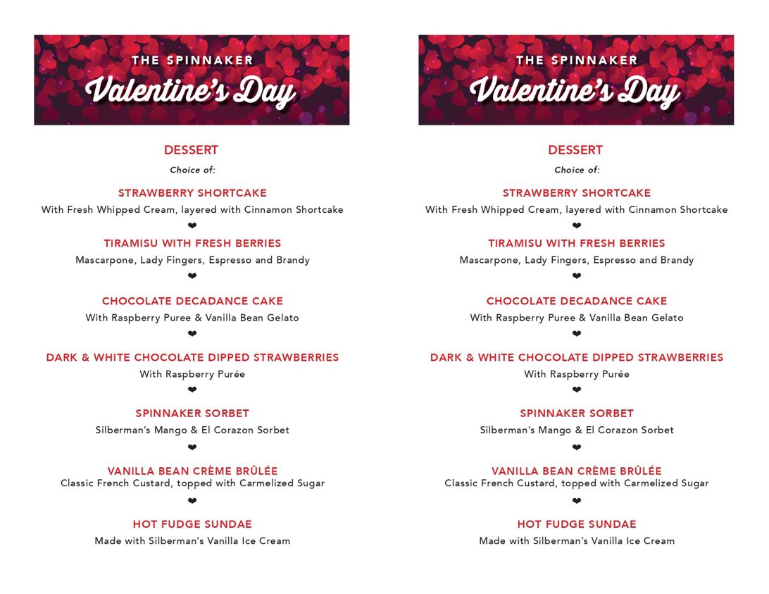 Valentine's Day Dinner And Dessert Menu